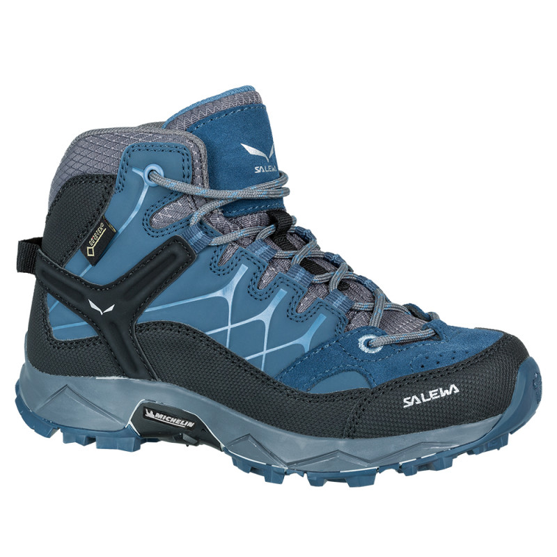 The JR Alp Trainer Mid GTX is the first Salewa children's GORE-TEX® boot with MICHELIN® sole. Made for hiking and mountain activities, it is equipped with the robust MICHELIN® Jr Ultra Train sole characterized by deep blocks and Outdoor Compound rubber, for excellent grip and stability on hard ground.
