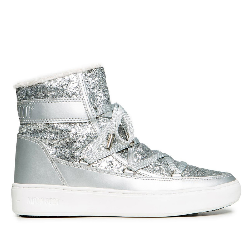 The MOON BOOT PULSE Z GLITTER are the first glittery sneakers made by the Moon Boot brand. The evolution of the winter boot in a trendy streetwear shoe. A shimmering glitter surface and satin laces give it an unmistakable character while the eco-fur lining guarantees the warmth to face the cold winter days in full spirit Moon Boot