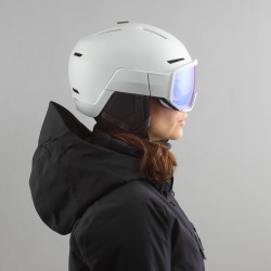 · Casco con visiera integrata fotocromatica · Compatibile con occhiali da vista · Fit ovale · Paraorecchie 3D confortevoli e avvolgenti · Alta aerazione con sistema regolabile · Fodera interna removibile e lavabile · Custodia da viaggio per visiera inclusa