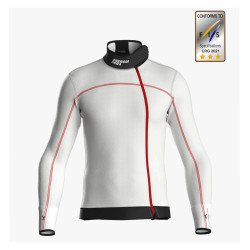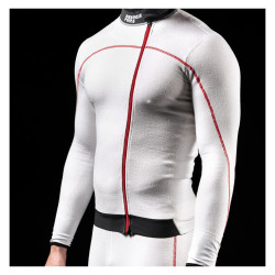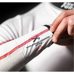 Una particolare attenzione deve essere osservata nell’indossare la maglia Cut Resistant, affinché questa possa fornire la protezione prevista. Il colletto della maglia, deve aderire al collo e la maglia deve coprire la vita senza lasciare allo scoperto durante i movimenti, la schiena. I polsini devono aderire ai polsi e rimanere coperti, all’interno della tutina, dai guanti. La fascia verticale nera nella schiena è realizzata in materiale elastico e non cut resistant, per dare maggior elasticità al capo. Deve essere coperta indossando il paraschiena.