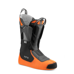 Presenta una zona più ampia in plastica morbida sopra il collo del piede che permette allo scafo di aprirsi più facilmente per infilare e sfilare lo scarpone.