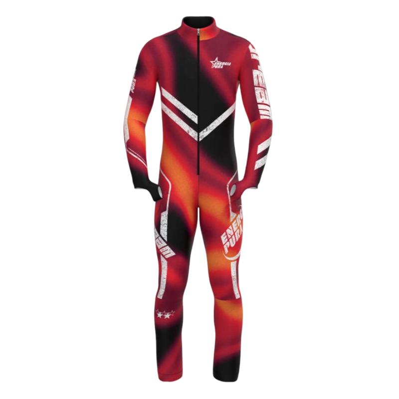 Tuta da gara THERMIC con tessuto bielastico, traspirante, antivento e anti peeling. Il modello della tuta è stato studiato pensando alle posizioni che l'atleta assume in gara, garantendo un'ottima aderenza sul corpo, un'alta elasticità per dare la massima libertà di movimento in tutte le posizioni. Nella parte anteriore è inserita una zip che favorisce l'entrata nella tuta, all'interno del fondo gamba è applicato un elastico di silicone antiscivolo che permette alla tuta una miglior aderenza allo scarpone. Nella tuta si trova una tasca porta skipass.