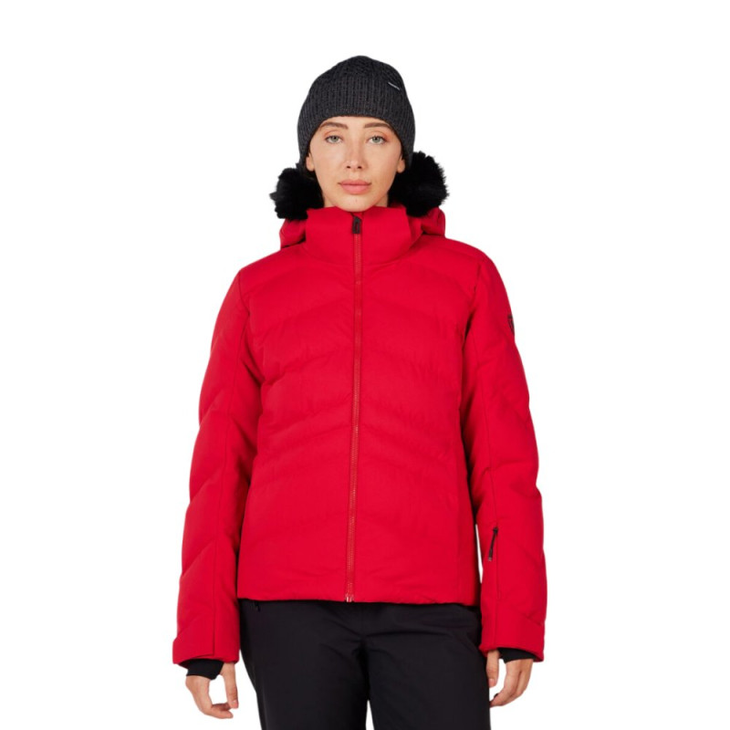 Immergiti in un calore che si sente, con un tocco di stile. La giacca da sci imbottita Rossignol Staci da donna offre calore in qualsiasi condizione e sfoggia un taglio accattivante. La membrana impermeabile e traspirante isola dal freddo e dalle intemperie, tenendoti all'asciutto, mentre l'isolamento Polydown trattiene il calore assicurando una discreta sensazione di leggerezza. Il paraneve incorporato e i polsini elasticizzati integrati con fori per i pollici aggiungono calore quando il maltempo si avvicina. Il cappuccio removibile è dotato di bordo in pelliccia sintetica staccabile, morbida e soffice al tatto. I dettagli di design includono una vestibilità femminile, e il look pulito è impreziosito dal nostro esclusivo logo a forma di gallo sul braccio.