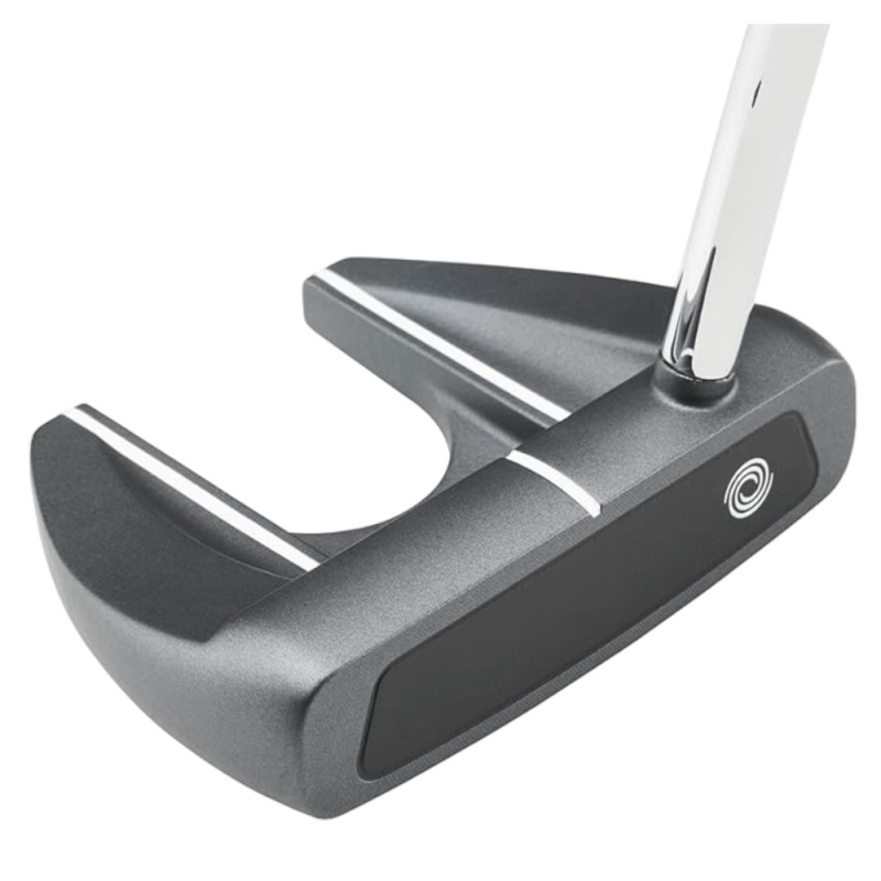 Colpisci con il putter Odyssey DFX V Line Fang. La tecnologia degli inserti DFX offre una sensazione di fluidità e un rotolamento perfetto, mentre l'impugnatura in gomma offre comfort.