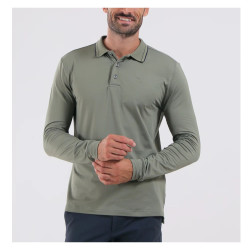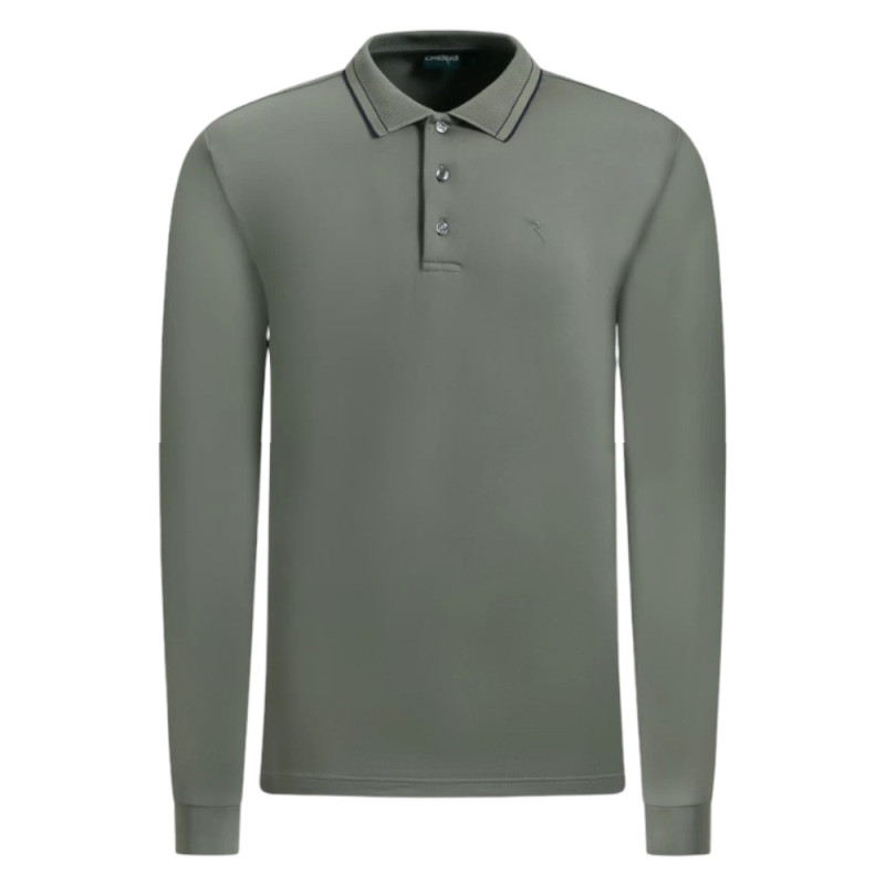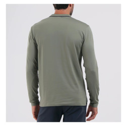 Alfabeto è una polo a maniche lunghe in jersey spazzolato con interno morbido, pensata per offrire calore e comfort nei mesi più freddi. Il colletto a costine bicolore con sottili righe a contrasto e il ricamo tono su tono del logo aggiungono un tocco raffinato al design pulito ed essenziale.
