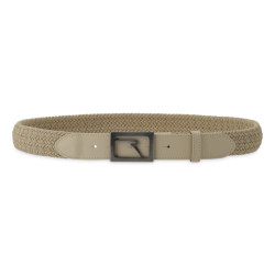 Belluto è una cintura in velluto stretch con inserti in pelle e fibbia metallica con logo. La lavorazione intrecciata dona movimento e flessibilità, per un accessorio comodo ed elegante, ideale per completare ogni look contemporaneo da golf.