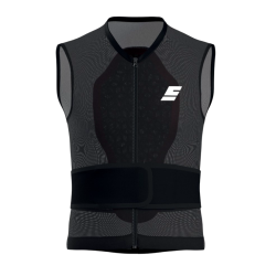 Gilet elasticizzato con zip ad apertura totale, con inserimento del supporto per la schiena. Aderente perché aumenta la sua stabilità e lergonomicità a contatto con la schiena oltre ad essere confortevole da indossare. Fascia elastica con velcro regolabile per la massima adattabilità in vita.