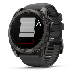• Durata della batteria Smartwatch: fino a 29 giorni (13 always on) Modalità orologio con risparmio energetico: fino a 41 giorni Solo GPS: fino a 84 ore (65 ore sempre acceso) Tutti i sistemi satellitari: fino a 68 ore (54 ore always on) Tutti i sistemi satellitari + Multibanda: fino a 62 ore (49 ore sempre acceso) Tutti i sistemi satellitari + Musica: fino a 18 ore