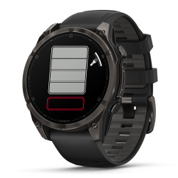 • Durata della batteria Smartwatch: fino a 16 giorni (7 always on) Modalità orologio con risparmio energetico: fino a 23 giorniSolo GPS: fino a 47 ore (37 ore sempre acceso) Tutti i sistemi satellitari: fino a 38 ore (30 ore always on) Tutti i sistemi satellitari + Multibanda: fino a 35 ore (28 ore sempre acceso) Tutti i sistemi satellitari + Musica: fino a 10 ore Durata massima della batteria in modalità GPS: fino a 81 ore GPS Expedition: fino a 17 giorni *Con un uso tipico della tecnologia SatIQ