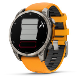 • Durata della batteria Smartwatch: fino a 16 giorni (7 always on) Modalità orologio con risparmio energetico: fino a 23 giorniSolo GPS: fino a 47 ore (37 ore sempre acceso) Tutti i sistemi satellitari: fino a 38 ore (30 ore always on) Tutti i sistemi satellitari + Multibanda: fino a 35 ore (28 ore sempre acceso) Tutti i sistemi satellitari + Musica: fino a 10 ore Durata massima della batteria in modalità GPS: fino a 81 ore GPS Expedition: fino a 17 giorni *Con un uso tipico della tecnologia SatIQ