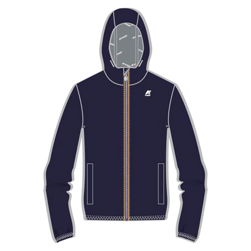 The Jack short men's jacket has a slim fit and an urban taste that interprets many looks. The model is particularly resistant to rain because it supports up to 5000 columns of water. The model has a slim line with a high collar and drawstring at the hood and at the bottom to adjust the fit. Made of nylon, it is characterized by the interior finished with an insulating membrane decorated with all-over K-Way lettering printed in silver tones.
