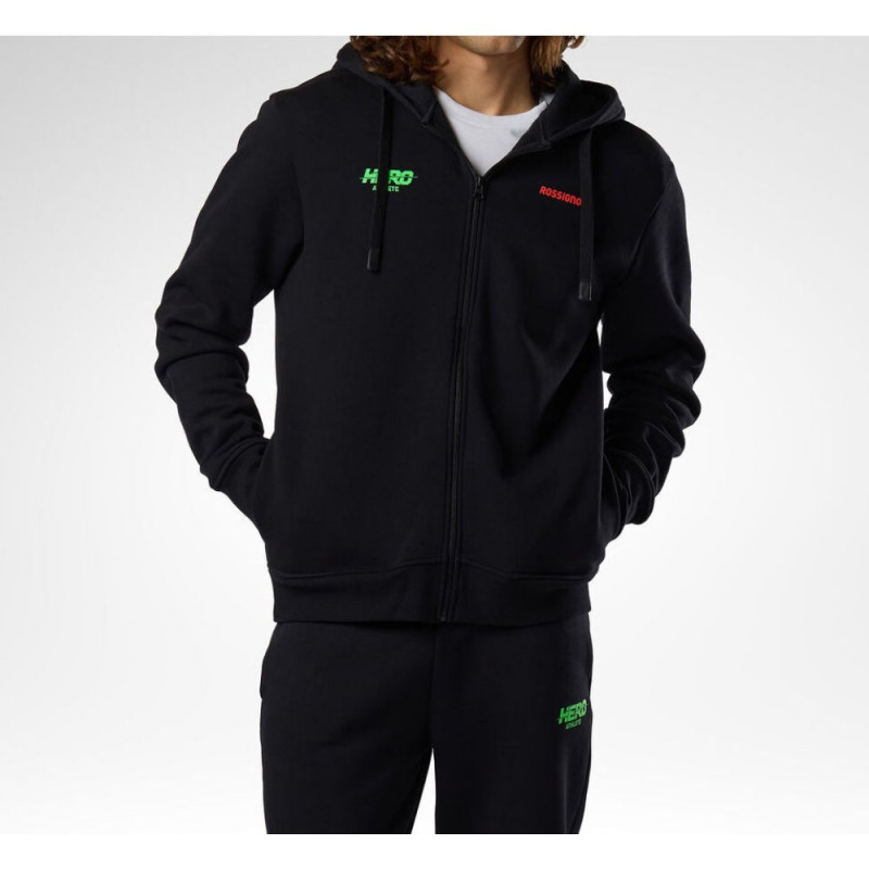 Rilassati con uno stile ispirato alle gare. La felpa con cappuccio e zip integrale Rossignol Hero da uomo rende omaggio alla ricca tradizione agonistica alpina di Rossignol con le grafiche Hero. Il morbido cotone ti garantisce il massimo comfort mentre ti rilassi dopo una lunga giornata in montagna.