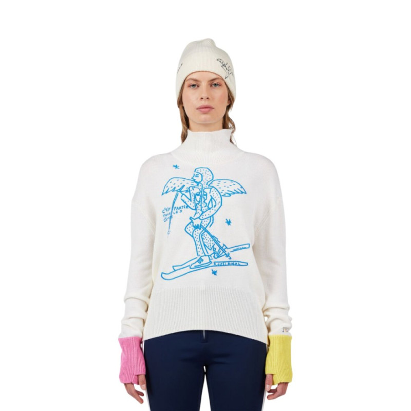 La leggenda della moda francese Jean-Charles de Castelbajac disegna angeli sui muri delle città da decenni. Ora i suoi disegni iconici prendono il volo in montagna con il maglione Rossignol JCC Lina da donna. Realizzato in morbidissima lana merino con dettagli a coste e collo alto, ti terrà bene al caldo con il massimo del comfort.