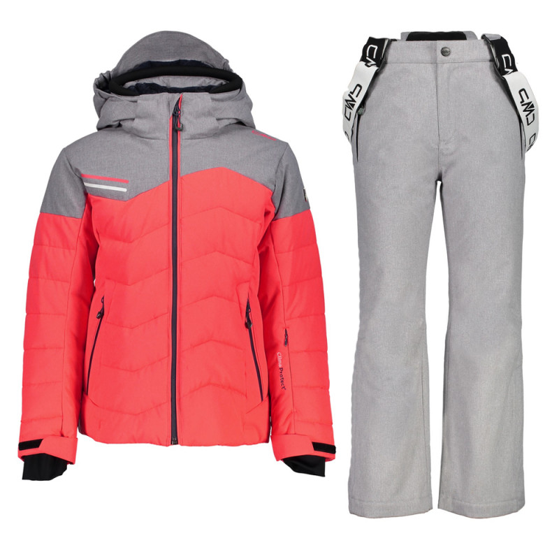 Complete designed for growing children. Set consisting of trousers and jacket, with an incomparable value for money and first-rate construction quality. This jacket will accompany your little girls on their long days in the snow. The detachable hood, the adjustable drawstring in the jacket, and the detachable straps and cuffs with your finger, will protect your girls from the air; combined with the gaiters in the lower leg in the overalls ensure comfort, versatility and safety.