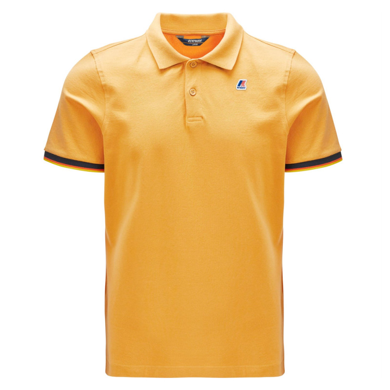 The Vincent boy's stretch cotton pique polo shirt is a functional elegant garment that adapts to any look. It is characterized by the edges of the short sleeves with a striped profile in the typical K-Way shades. The vents on the sides follow the movements.