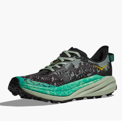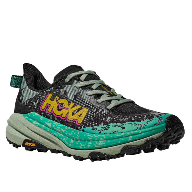 Esperienza d’uso ricca di aderenza e reattività per i terreni tecnici. Il meglio del meglio sul trail. Eccolo. Speedgoat 6 è nata per dominare i trail, grazie alla combinazione di comprovata ammortizzazione HOKA, trazione aggressiva e materiali ultraleggeri. Calzatura studiata per i terreni tecnici, questa recente riedizione presenta tomaia in tessuto traspirante, telaio interno che avvolge il piede, linguetta con doppio soffietto più morbida e orientamento del carrarmato ripensato prendendo spunto dallo zoccolo di una capra (“goat” in inglese, che richiama il nome della scarpa).