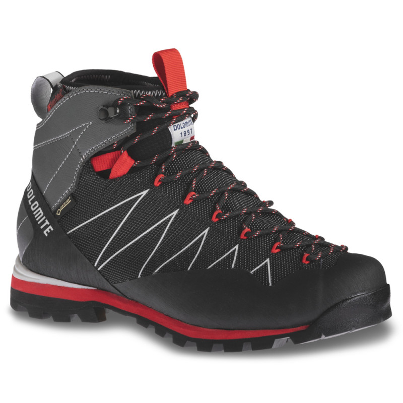 I Crodarossa Pro GTX sono scarponcini da avvicinamento, specificamente progettati per escursioni ad alta difficoltà o su percorsi lunghi e tecnici. Spiccano per le loro elevate prestazioni, e sono realizzati in tessuto Superfabric®, un materiale tecnico ottenuto stampando su una base di tessuto ad alta consistenza minuscole piastre ultra resistenti che gli conferiscono un’eccezionale solidità contro tagli e alle abrasioni. La combinazione di una calza interna elasticizzata e una suola Vibram® Winkler Evo garantisce inoltre precisione e controllo totale per ciascun movimento, assicurando al tempo stesso stabilità e comfort, anche su terreni imprevedibili. Sono scarponcini da montagna concepiti per scalatori ed escursionisti esperti.CARATTERISTICHE