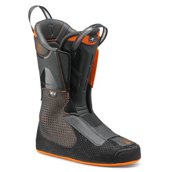 Presenta una zona più ampia in plastica morbida sopra il collo del piede che permette allo scafo di aprirsi più facilmente per infilare e sfilare lo scarpone.