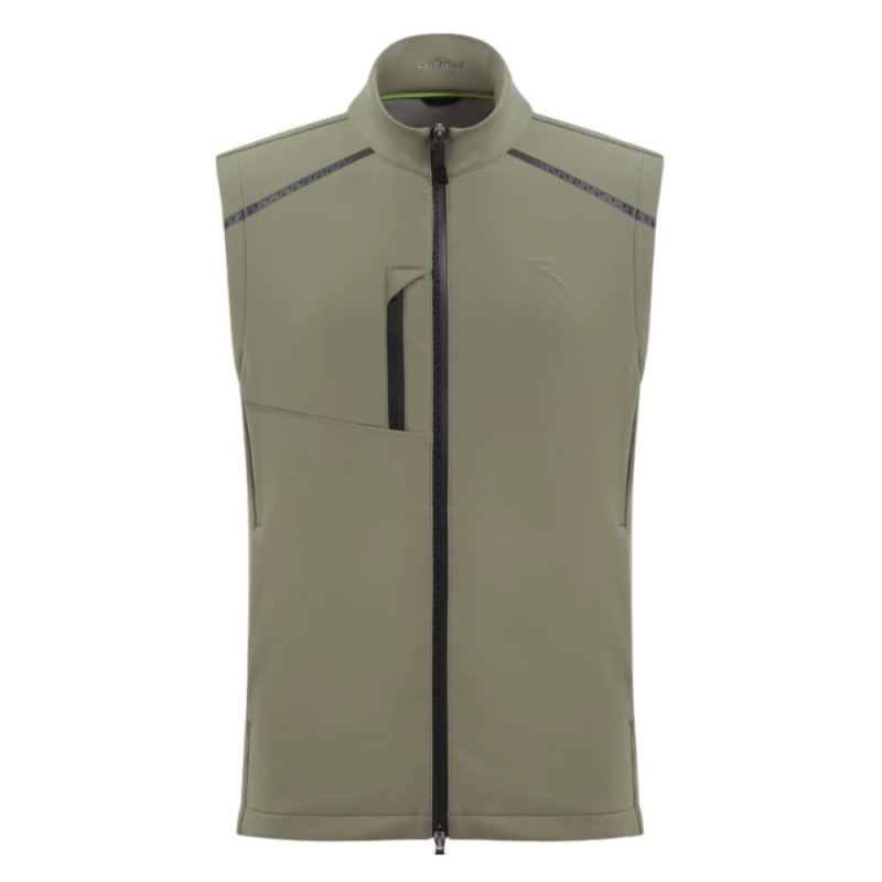 Emporio è un gilet Pro-Therm in softshell 3 strati dal tocco superiore, antivento e idrorepellente, con interno garzato per maggiore isolamento e morbidezza. Presenta zip rovesciata con nastro Monogram, tasche laterali con zip, taschino di sicurezza sul petto e inserto elastico al fondo progettato per tornare in posizione dopo ogni movimento, senza dare fastidio o interferire durante il gioco. Ideale per vestirsi a strati in ogni condizione, con un design sportivo ed essenziale.