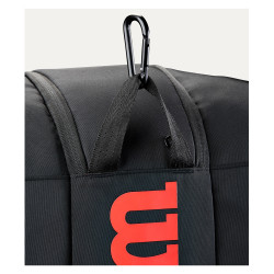 • Il sistema di doppio trasporto Wilson consente di portarla a mano o indossarla come zaino, mentre il moschettone triangolare permette di appendere la borsa alla recinzione del campo, richiamando il simbolo del design Clash.