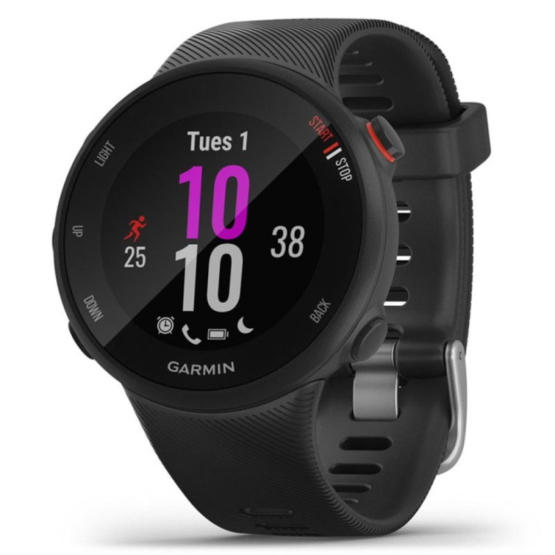 Forerunner® 45S è un orologio GPS che incorpora tutte le funzionalità essenziali per la corsa in uno smartwatch leggero, da indossare giorno e notte.