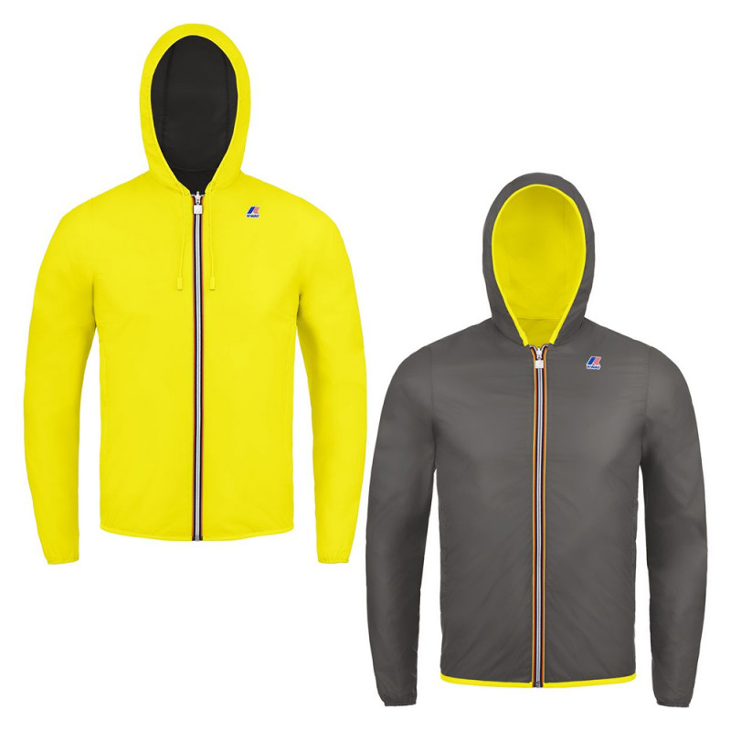 Variante Fluo del K-WAY Jacques Double reversibile in nylon Plus - tecnologico, confortevole, perfettamente impermeabile, antivento e traspirante - e l’altro lato in nylon leggero in contrasto colore. Cappuccio fisso. Termosaldata su lato nylon. Due tasche per lato. Logo K-WAY ed etichetta stampate.