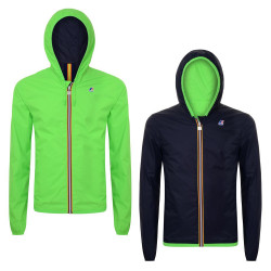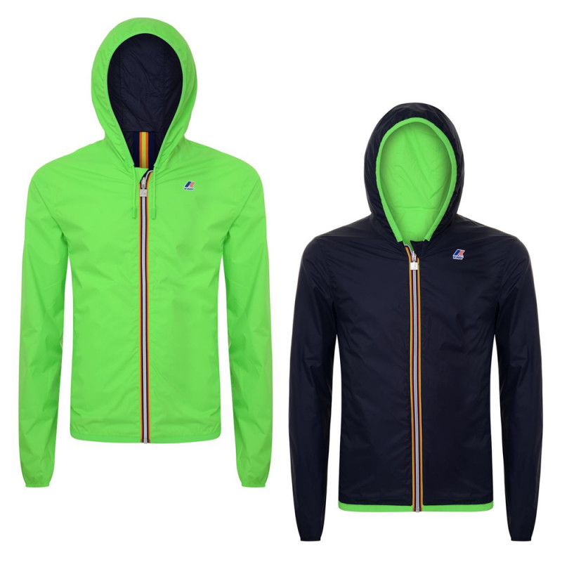 Variante Fluo del K-WAY Jacques Double reversibile in nylon Plus - tecnologico, confortevole, perfettamente impermeabile, antivento e traspirante - e l’altro lato in nylon leggero in contrasto colore. Cappuccio fisso. Termosaldata su lato nylon. Due tasche per lato. Logo K-WAY ed etichetta stampate.