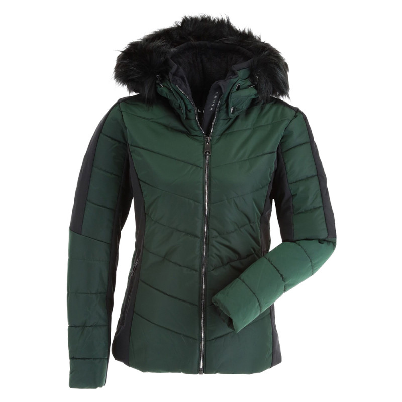 La giacca da sci da donna imbottita extra-spessa di Luhta offre un calore lussuoso e un comfort duraturo durante lo sci. Mantiene l'acqua e il vento a bada in modo da poter piegare le piste in tutta tranquillità. Il design sportivo e avvolgente include tutte le caratteristiche di cui hai bisogno per una comoda giornata in discesa: c'è un blocco da neve sull'orlo, polsini interni sui polsini e una calda fodera sulle tasche anteriori per mantenere calde le tue mani gelate. Il look affascinante è completato da un cappuccio staccabile con un elegante bordo in ecopelliccia.