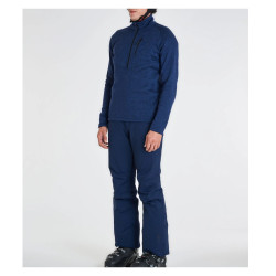Questa maglia è realizzata in tessuto Techno Tricot Natural Stretch, che garantisce elasticità e comfort durante l’uso. La mezza zip frontale è dotata di un tiretto personalizzato che ne facilita l’apertura e la chiusura, aggiungendo un tocco distintivo al design. Una zip aggiuntiva è presente sulla tasca petto, anch’essa con tiretto personalizzato, utile per riporre piccoli oggetti in modo sicuro e pratico. Sul petto spicca un logo ricamato a rilievo, che conferisce un dettaglio elegante e riconoscibile al capo.